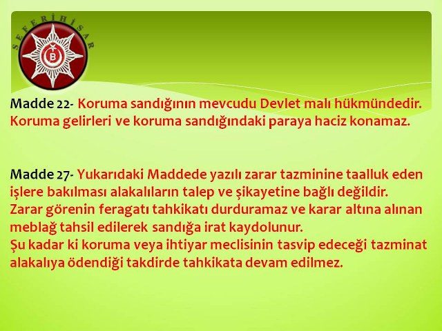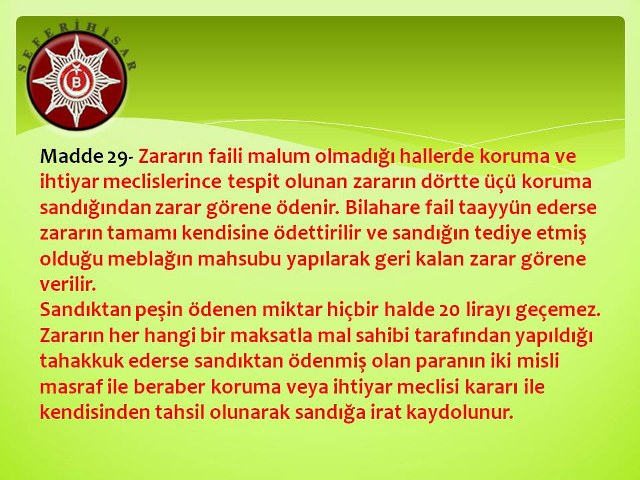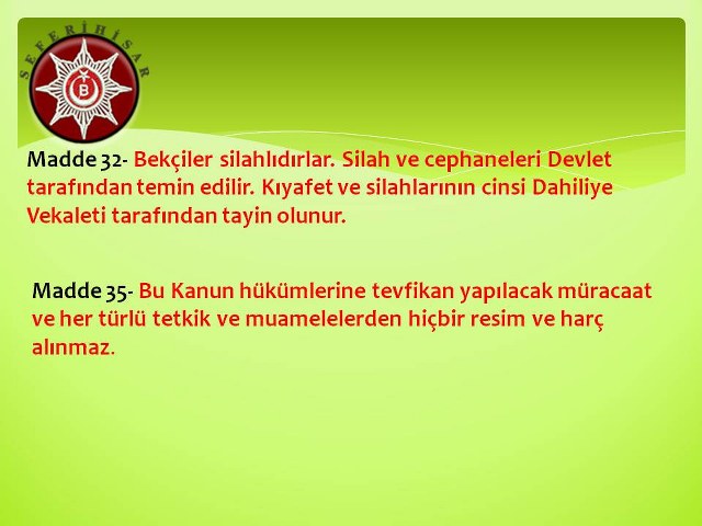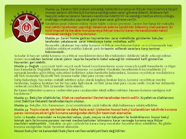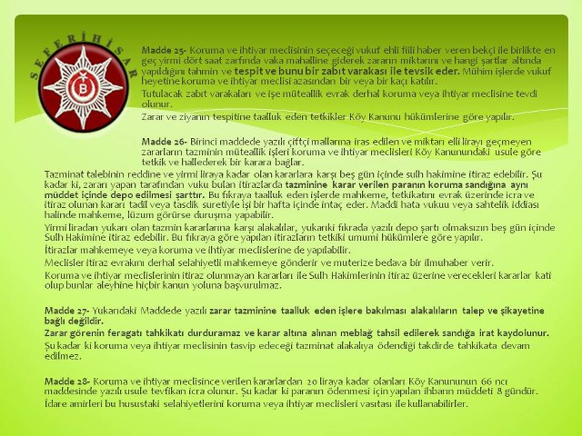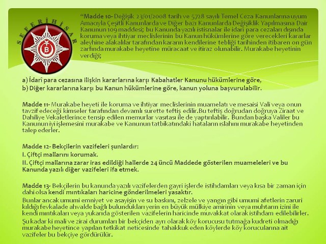 1941 Yılının Temmuz ayında henüz Türkiyemizde Emekli Sandığı, SSK ve Bağkur yok iken Çiftçilerimizin hasar, zararlarına ve tecavüzlerine karşı hem ekonomikman hem de asayiş açısından önlem, yakalama ve cezai müeyyide anlamında Çiftçilerimize derman olması amacıyla kurulmuş her anlamıyla bir Devlet Kuruluşudur. Buna karşın Personel edinme çalışma ve iş anlayışı ücret ve tazminat politikası açısından 657 Sayılı Yasaya tabi olmayan, özel sektör yapısına sahiptir.