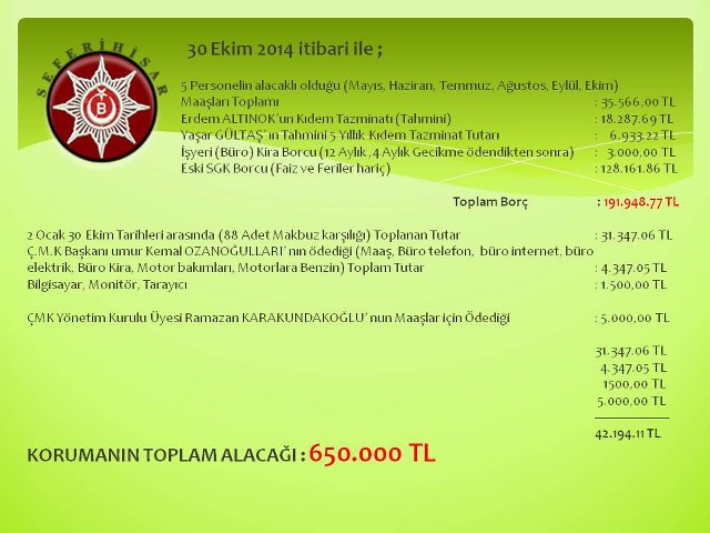 Bu acz içindeki durum ne Devletin bir Kurumu olan Seferihisar ÇMK ' ya nede haysiyetli bir şahıs veya Kuruluşa yakışmaktadır. Çözüm elzemdir.