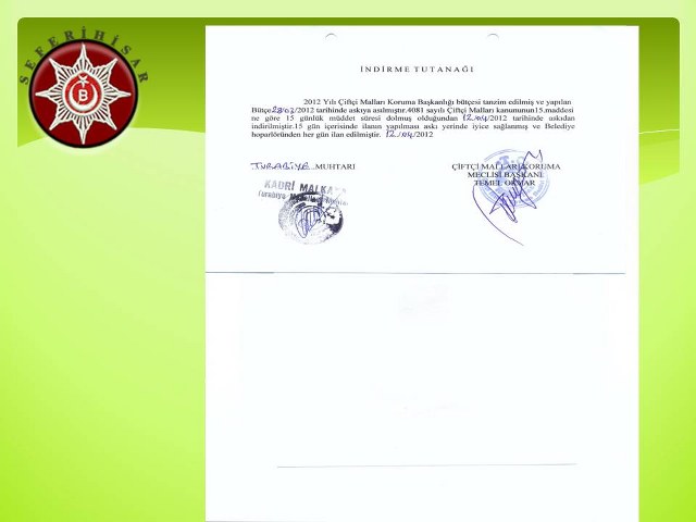 Seferihisar Çiftçi Malları Koruma Meclisi Başkanlığının Hazırlamış olduğu Sunum;